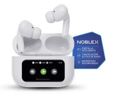 Auricular in ear inalambrico TWS. Conexion Bluetooth 5.4. Microfono. Control de volumen. Control tactil de reproduccion. Bateria recargable, hasta 20 hs de reproduccion. Estuche compacto con bateria incluida y pantalla tactil. Conectividad automatica. Sonido Hi Fi con extra bass. Conector de carga tipo USB-C. Incluye 2 juegos de almohadillas de silicona + correas, cable de carga tipo C.